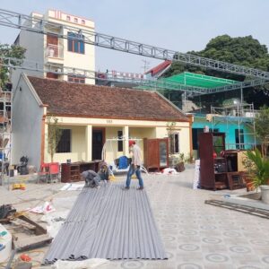 – Hệ thống mái kéo sắt 20 x 40m, dày 1,2 ly, thanh sắt hộp chịu tấm mái (bạt) kéo.
